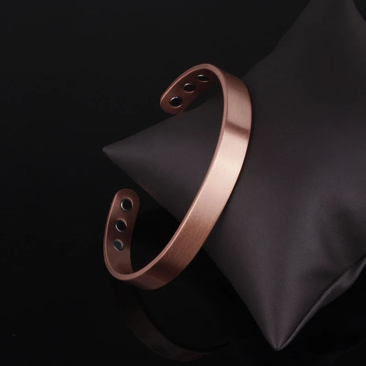 Pulsera y anillos de cobre. Set Pure Copper Bracelets and Rings Simplicity Cuff Magnetic Bangles for Women Men Arthritis Health Solid Copper Jewelry